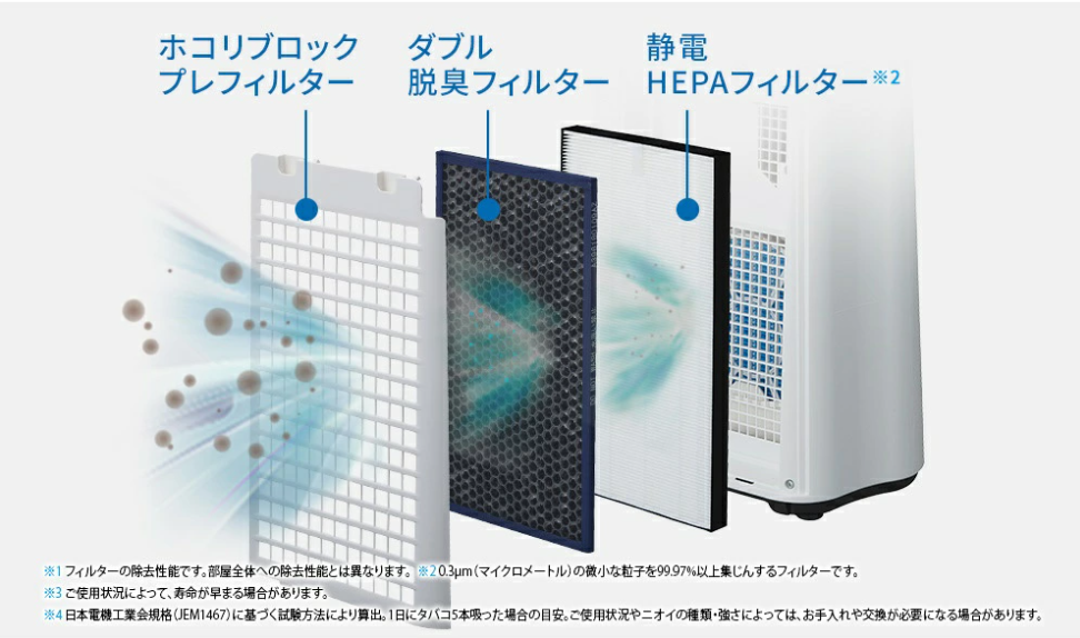 • ベネフィット: 服やカーテン、壁などに花粉やホコリが付着するのを防ぎ、空気中に舞い上がった花粉を本体が吸い込みやすくなります。